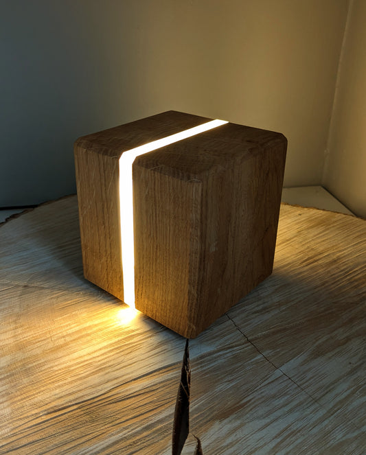 ÉpuiséLampe cube en chêne massif