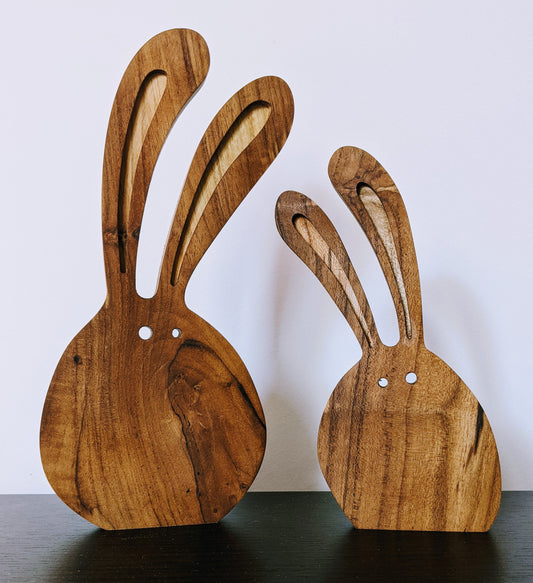 Duo de Lapin en bois de Teck
