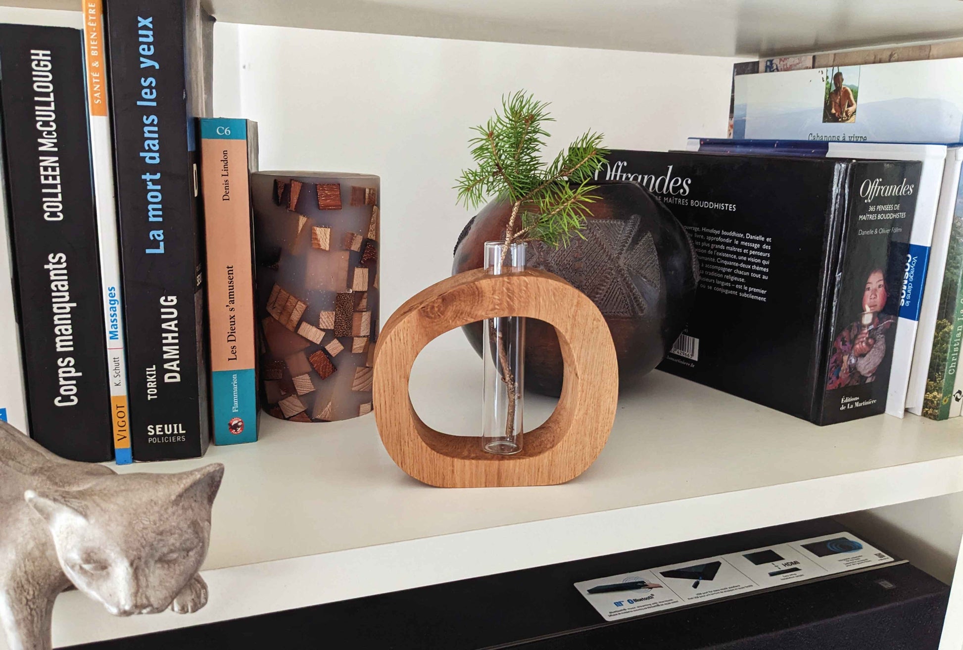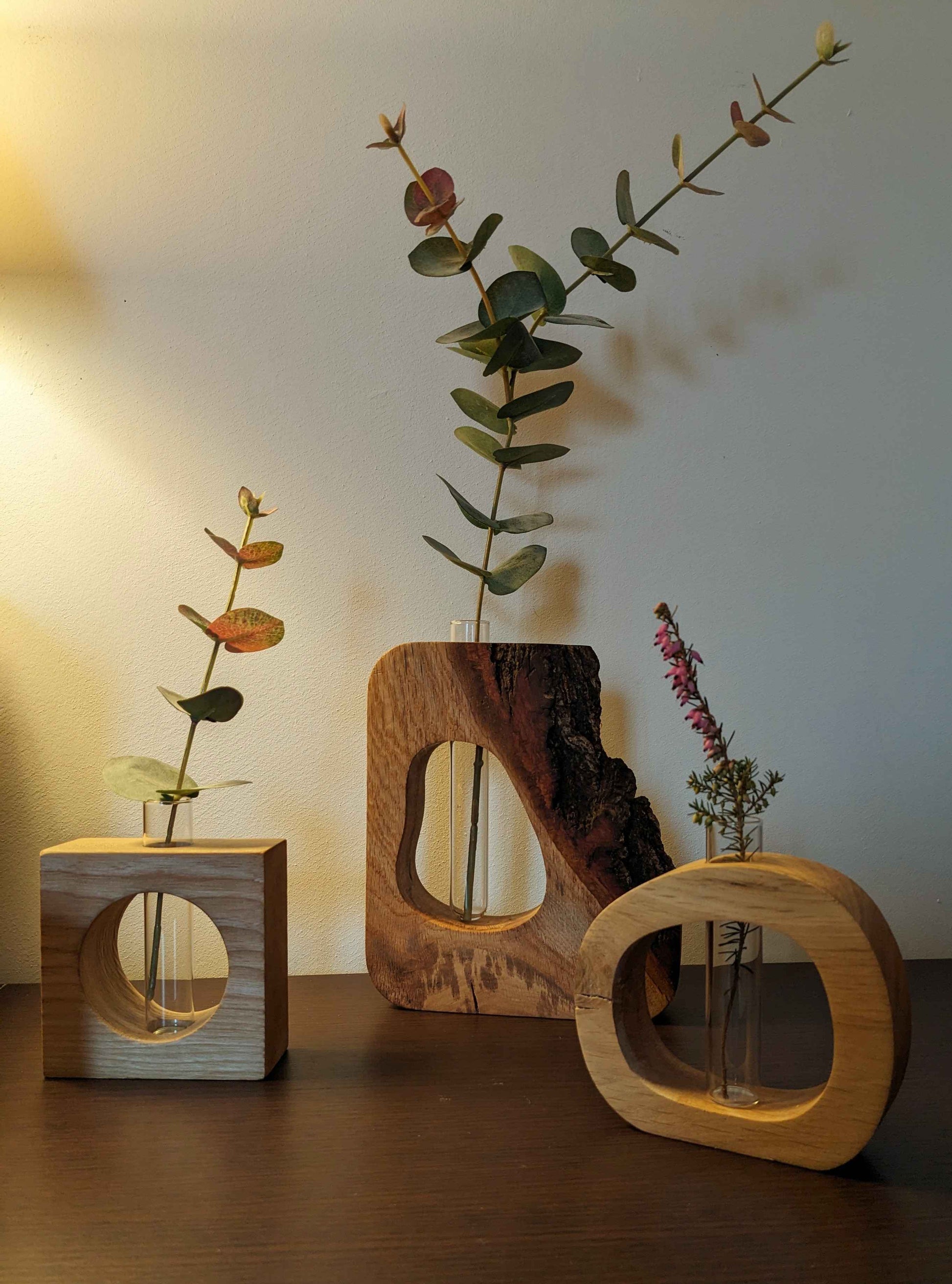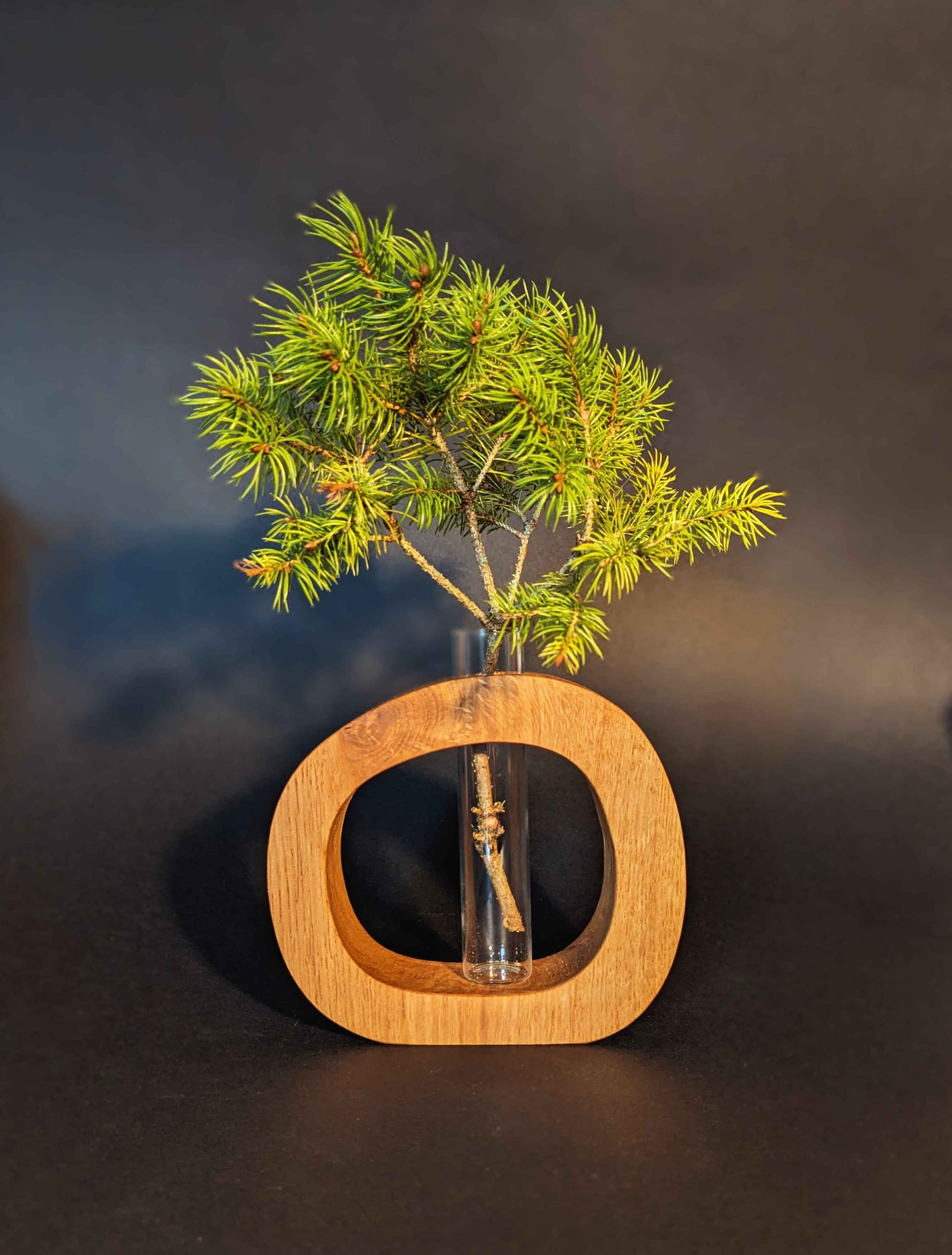 Soliflore en chêne avec fiole en verre