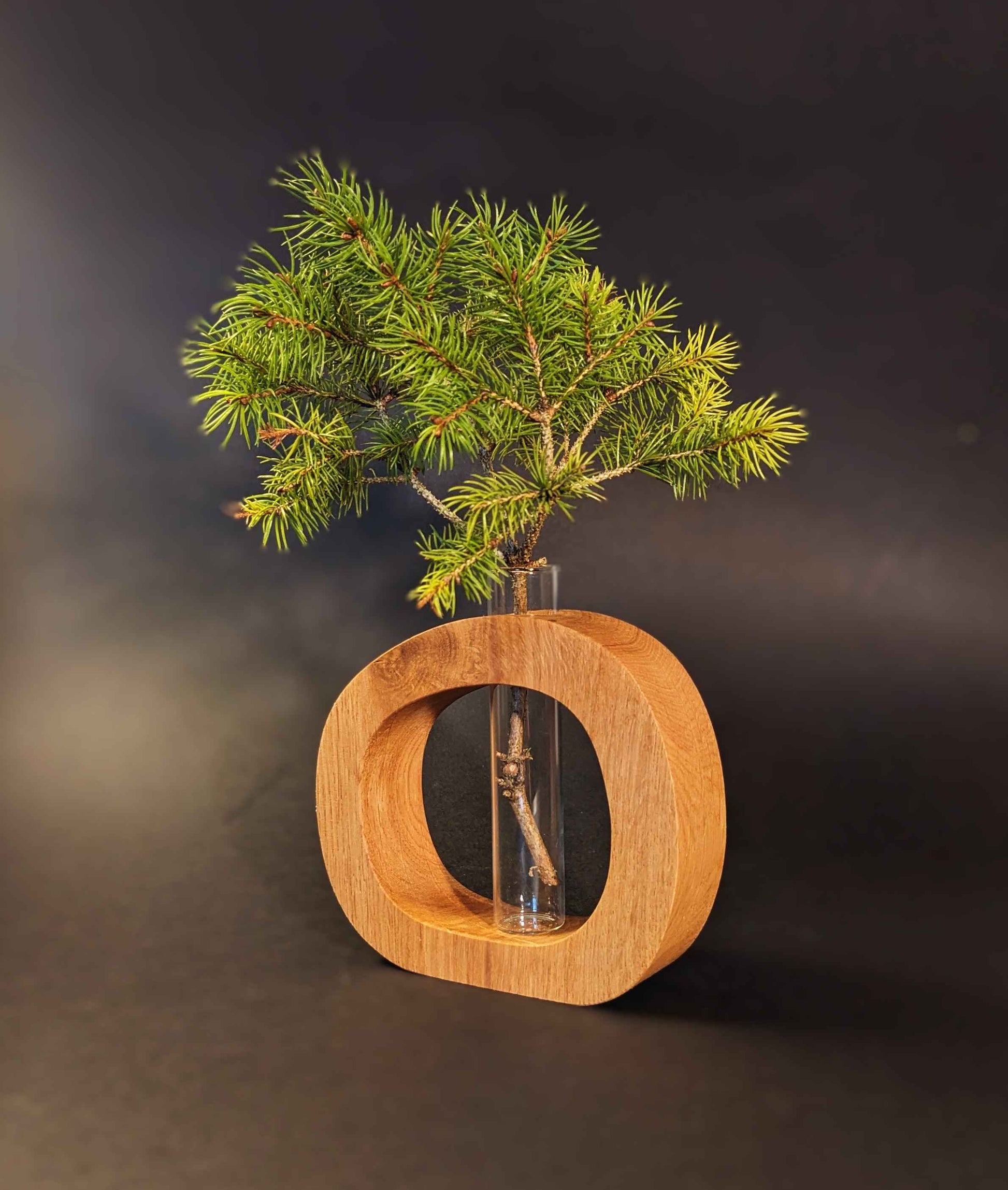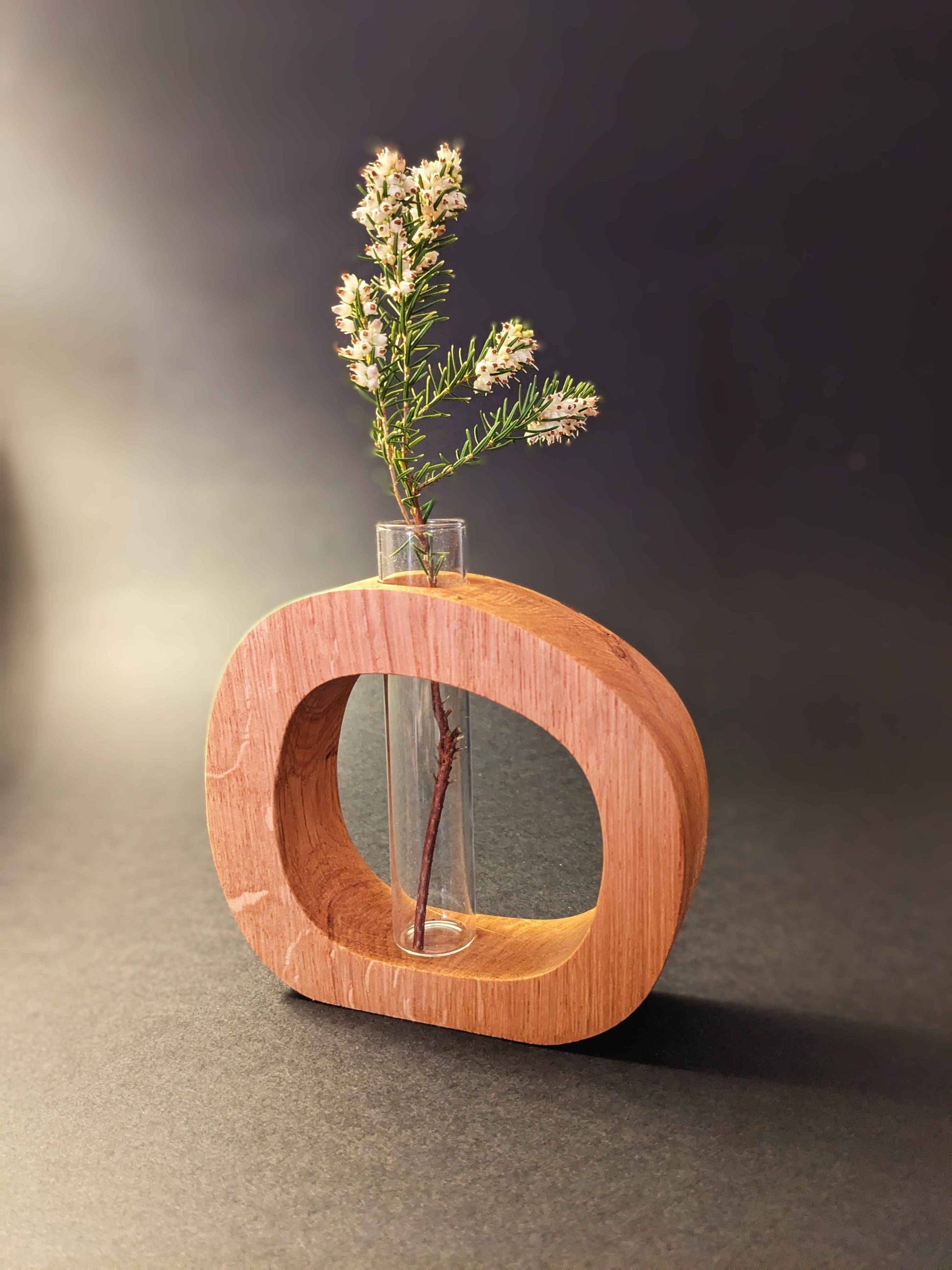 Fait de bois naturel de chêne et de verre, ce petit vase soliflore sera aussi un parfait cadeau à faire à des amis ou de la famille pour toutes sortes d'évènements.